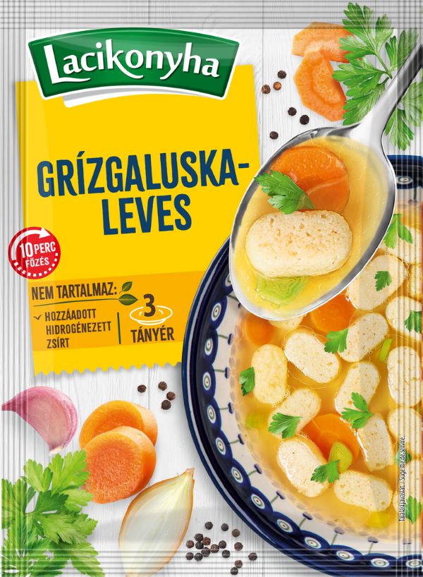 A Húsgombócleves csigatésztával nem tartalmaz tartósítószert és 4 tányérnyi adag.