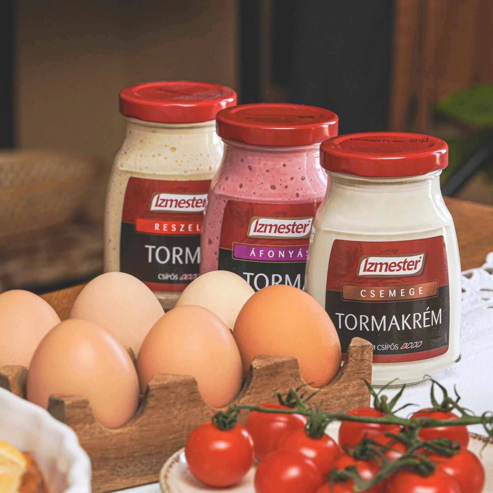 Az Ízmester minőségi tormái között mindenki megtalálja a kedvencét: a klasszikus reszelt torma karakteresen csípős, az áfonyás torma kellemesen, enyhén csípős-gyümölcsös, míg a csemege tormakrém lágyabb, krémesebb ízvilágot ad a fogásoknak. Tormakínálatunk nagyszerű választás a család apraja-nagyja számára is, akár sültekhez, húsvéti sonkához, hidegtálak mellé vagy egy finom szendvicsbe.