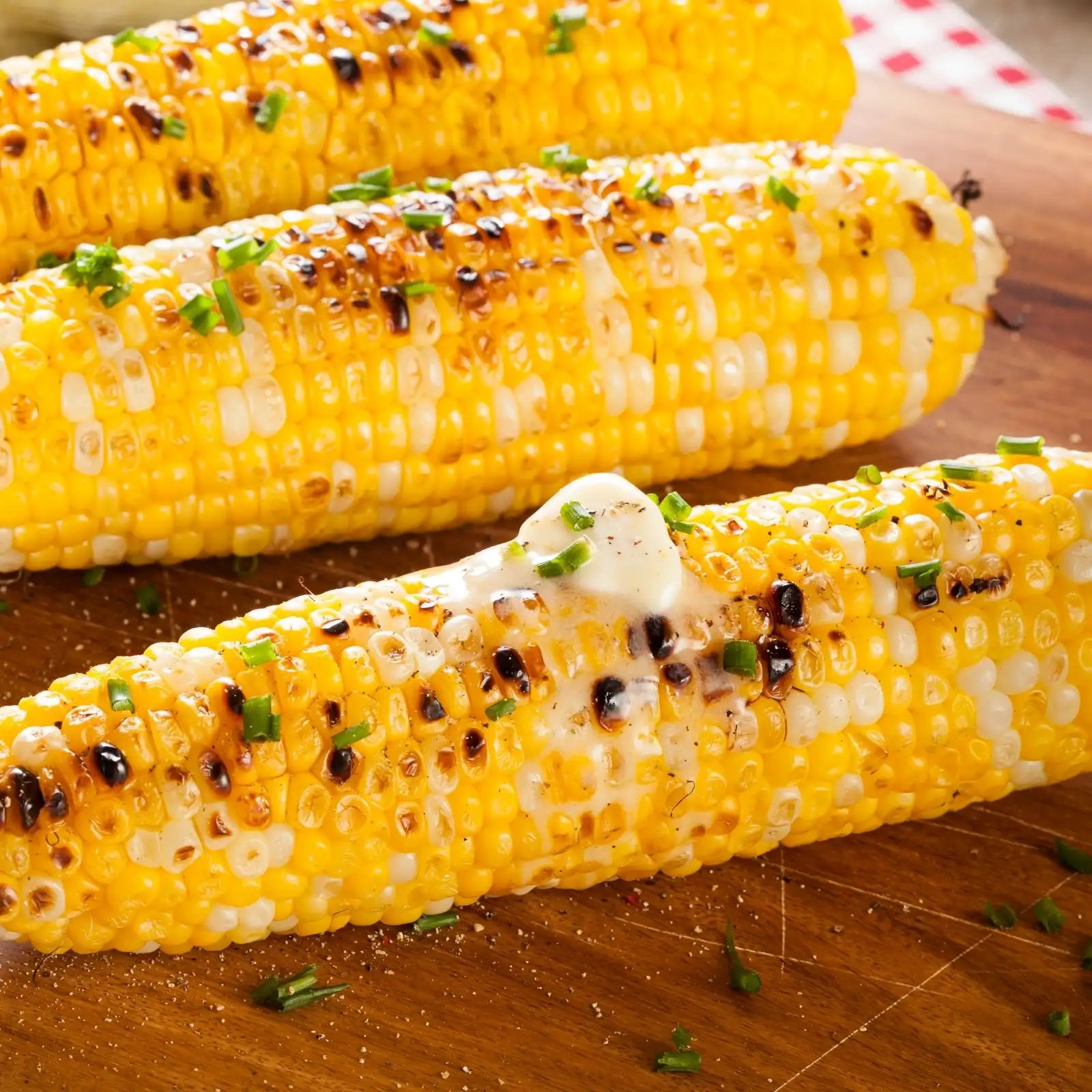 Fokhagymás fűszersó vajjal egy cső sült kukoricára kenve