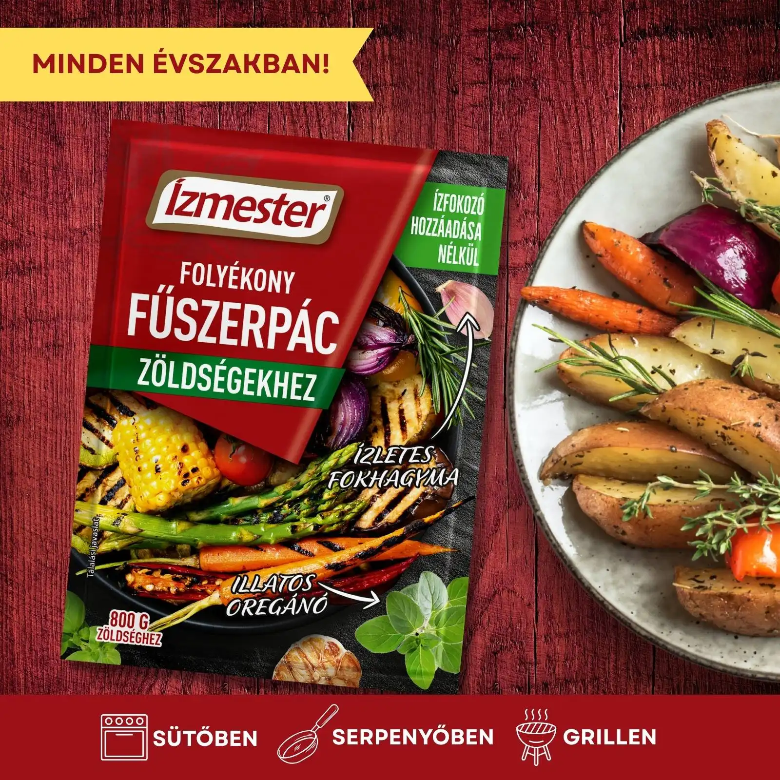 Az Ízmester folyékony fűszerpác zöldségekhez serpenyőben, sütőben és grillen készült zöldségekhez is kiváló választás, így nemcsak a nyári grillpartik, hanem a hétköznapi vacsorák hőse is lehet. A finom ízeket többek között az édes fűszerpaprika, a fokhagyma, szárított vöröshagyma, koriander, fehér mustármag és egyéb zöldfűszerek biztosítják.