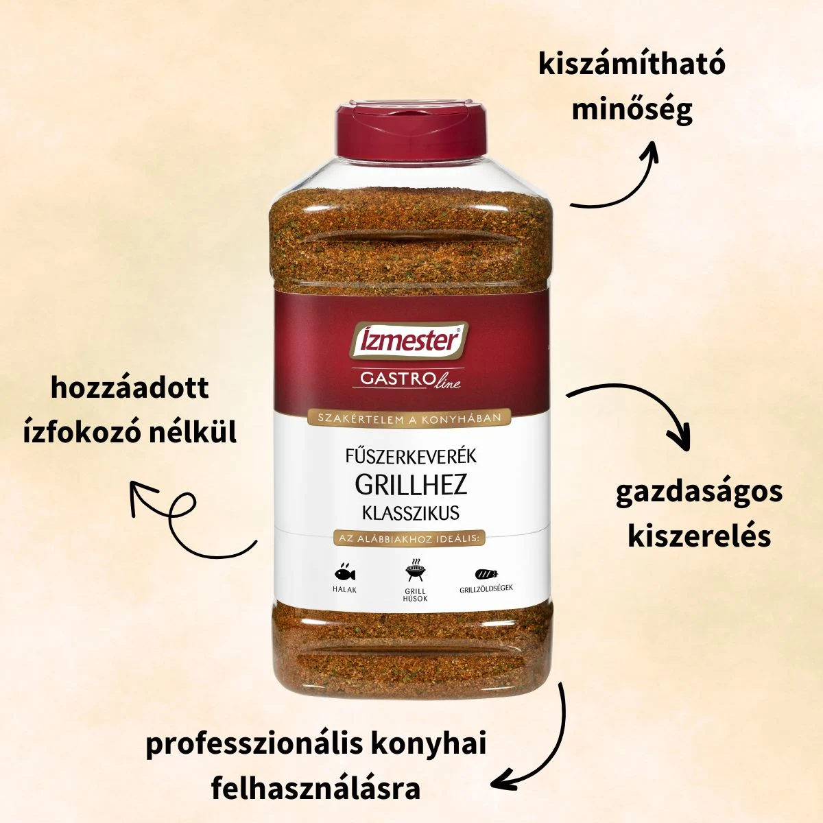 Az Ízmester Gastroline termékek kifejezetten a professzionális konyhai környezet igényeihez lettek kifejlesztve. Nagyobb kiszerelésüknek köszönhetően lehetővé teszik a stabil, kiszámítható ízhasználatot a különböző ételek elkészítése során.