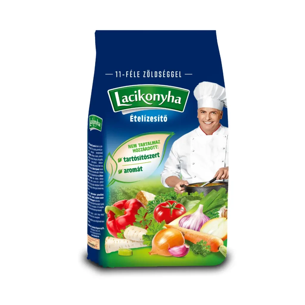 A Lacikonyha univerzális ételízesítő gasztro kiszerelésben megbízható, költséghatékony alap a mindennapi konyhai munkához. 11-féle szárított zöldséget tartalmaz – többek között sárgarépát, paszternákot, burgonyát, zellert és fokhagymát –, így egységes, természetes zöldséges alapízt ad leveseknek, főzelékeknek, szószoknak és egytálételeknek.