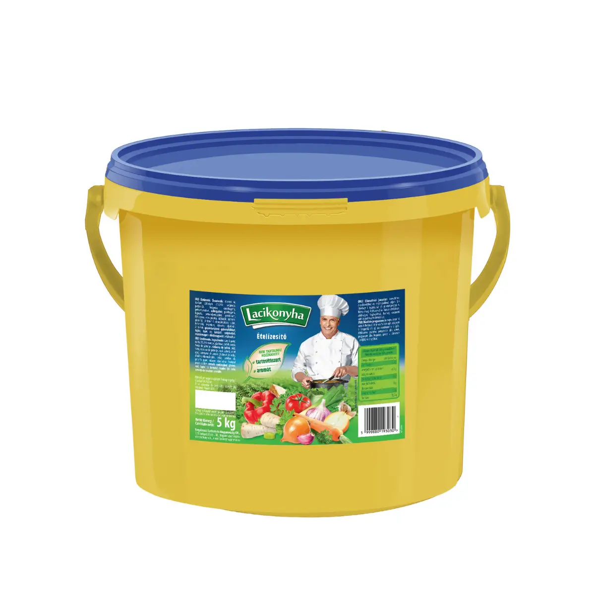 Válaszd a konyhád igényeihez illő kiszerelést! A Lacikonyha univerzális ételízesítő többféle csomagolásban elérhető: 1 kg-os tasakban, illetve 5 kg-os vödrös kiszerelésben, hogy a kisebb büféktől a nagykonyhákig mindenki megtalálja a megfelelő megoldást.
