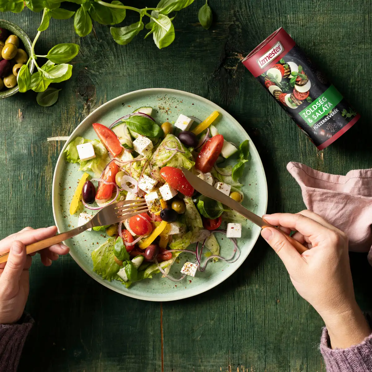 A fűszerezést nem kell túlgondolni. Ha nem elég ízes a zöldség vagy a saláta, szórj még rá egy keveset közvetlenül a kész ételre a zöldség és saláta fűszerkeverék szórófejes dobozából. Az ízzel biztosan elégedett leszel.